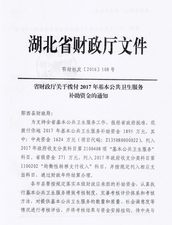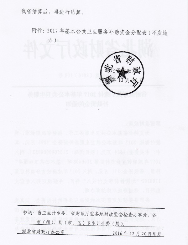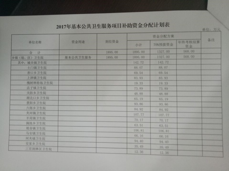 2017年基本公共卫生服务补助资金公示