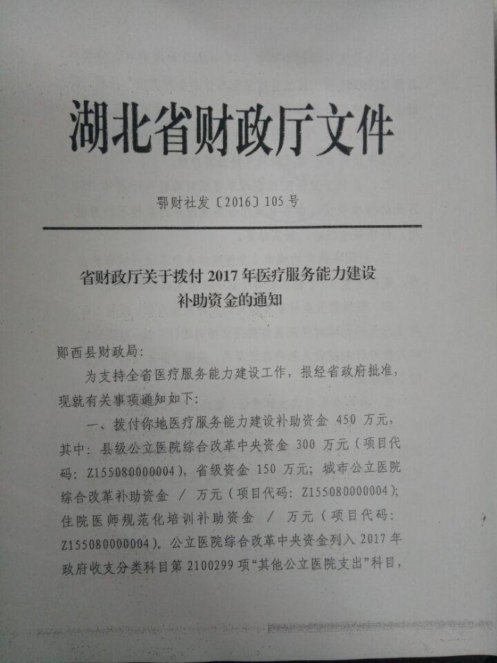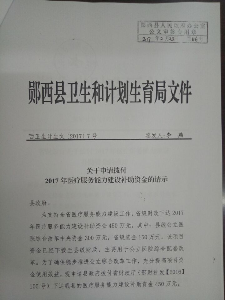 县卫计局关于预拨2015年基本公共卫生服务项目
