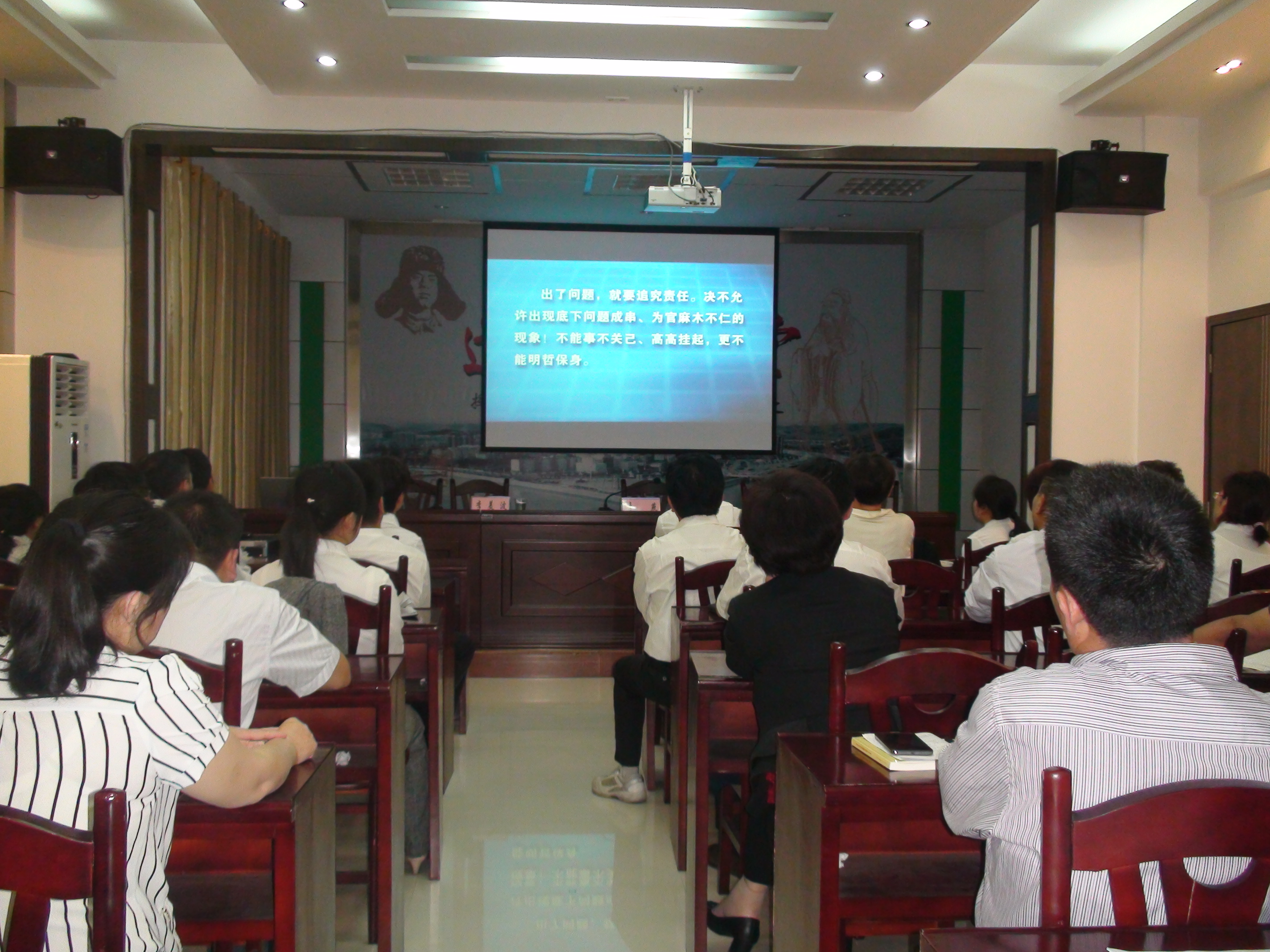 为深入开展第十七个党风廉政建设宣传教育月活动,进一步严明政治纪律和政治规矩,5月26日,局长李燕同志主持召开全局会议,集中观看反腐倡廉警示教育片《纪律失守的代价》。该片通过触目惊心的案例,深刻剖析了一些党员领导干部违纪违法的思想根源,对党和社会带来的重大危害,为全局党员干部职工敲响了警钟,上了一堂鲜活的警示教育课。