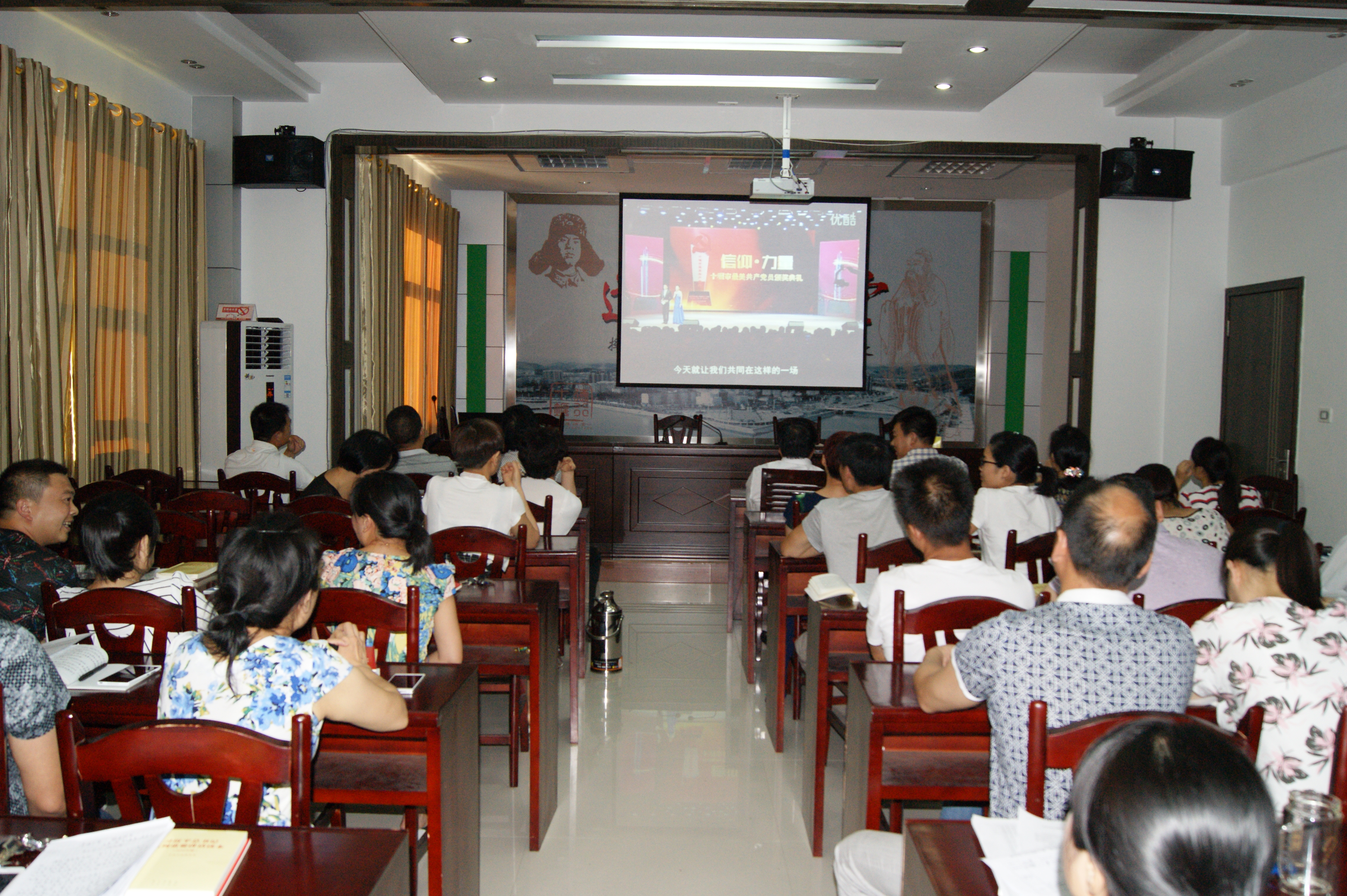 活动现场,局机关党支部全体党员齐唱国歌,气氛庄重热烈。在李美波同志带领下,全体齐诵《党章》第二、三章,《习近平总书记系列重要讲话读本》第一章第四节“实干才能梦想成真”。全体党员共同观看“十堰市最美共产党员”专题视频,引导党员干部向先进党员看齐,以高昂的激情、严实的作风、良好的品格积极投身于卫生计生事业。