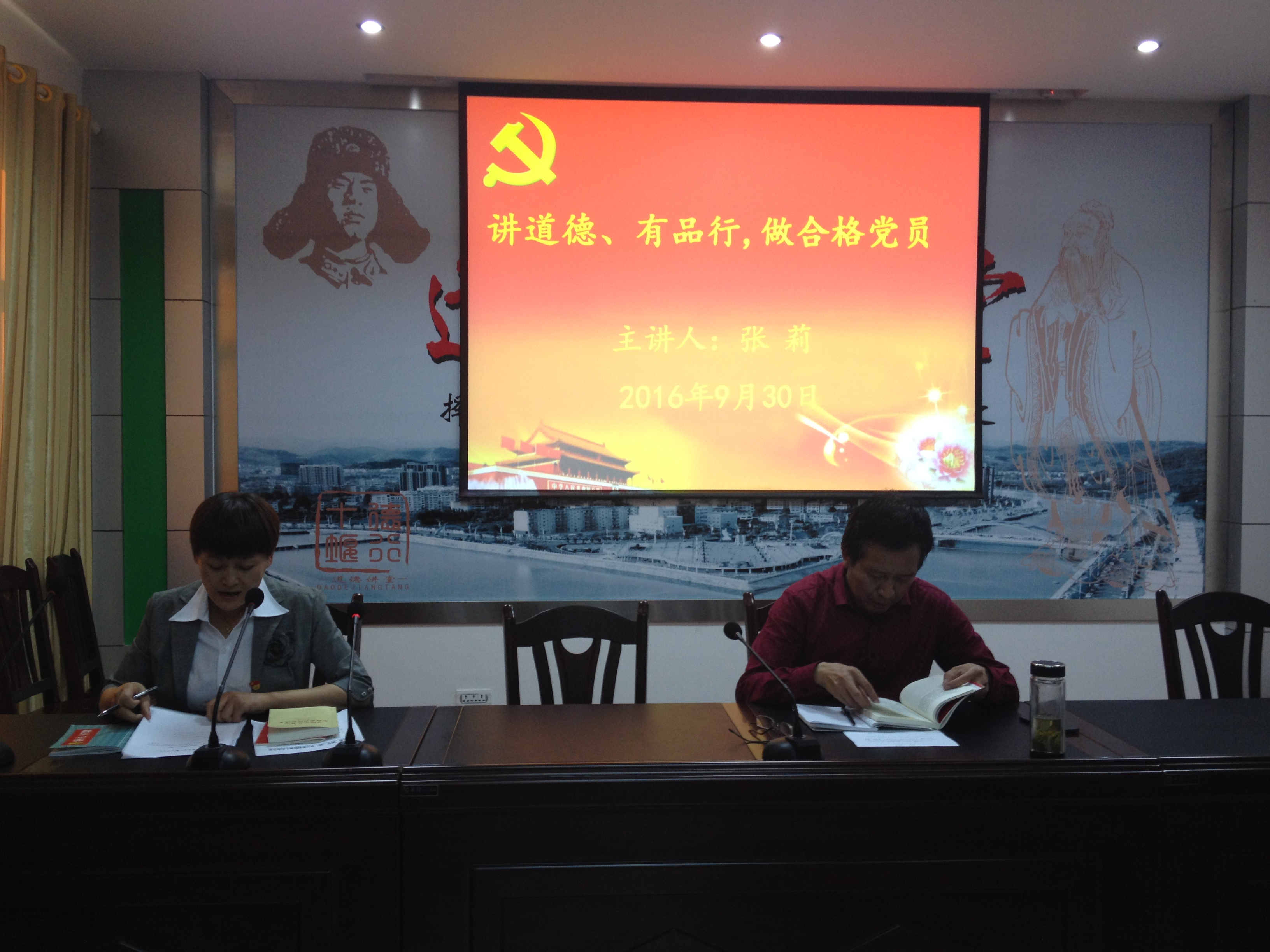 局工会主席张莉同志以“讲道德、有品行,做合格党员” 为题,为全体党员上了一堂生动的党课,从三个方面引领党员同志进行学习:一是共产党员讲道德有品行的时代意义;二是共产党员的道德品行包括哪些方面;三是共产党员如何做到讲道德有品行。课后大家积极开展了专题研讨发言,结合自身在实践中如何做好本职工作、履行党员义务,谈心得体会。