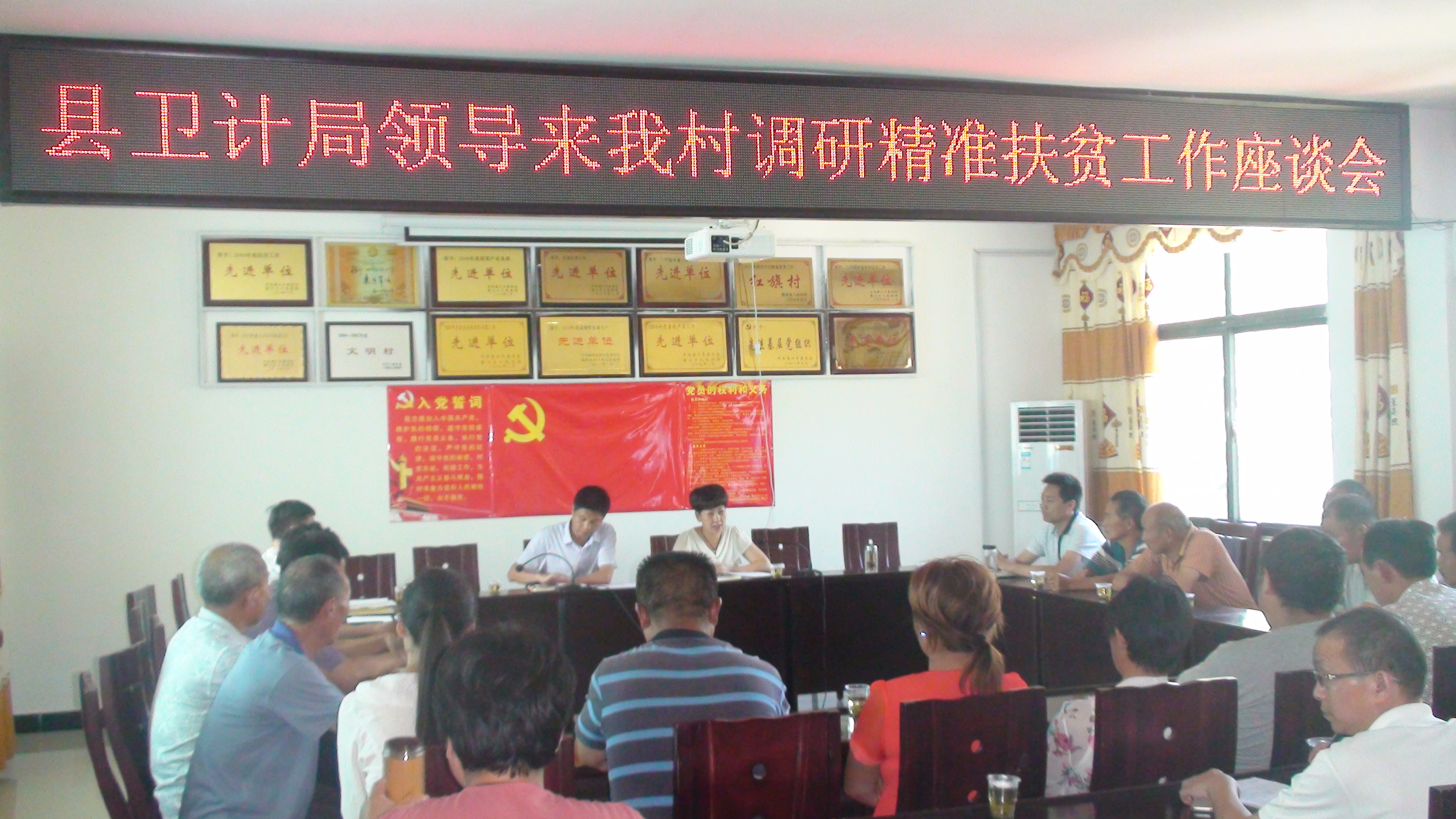 8月16日下午,卫计局局长李燕来到香口乡孟川村就精准扶贫工作进行专题调研。她下午2点从局里出发,不到3.30时就来到村委会,村委会的会议室里已经整整齐齐坐了近20名群众代表,他们当中有党员代表、贫困户代表和非贫困户代表,乡长高兰品陪同调研。