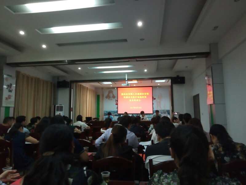 9月19日,全县健康扶贫慢病补充医疗保险政策业务培训会在县卫计局五楼会议室召开,标志着我县贫困人口慢病补充医疗保险政策正式启动实施。县健康扶贫办相关人员、县人保财险分管健康险经理,县、乡健康扶贫专员及窗口结算人员共计60余人参加会议。