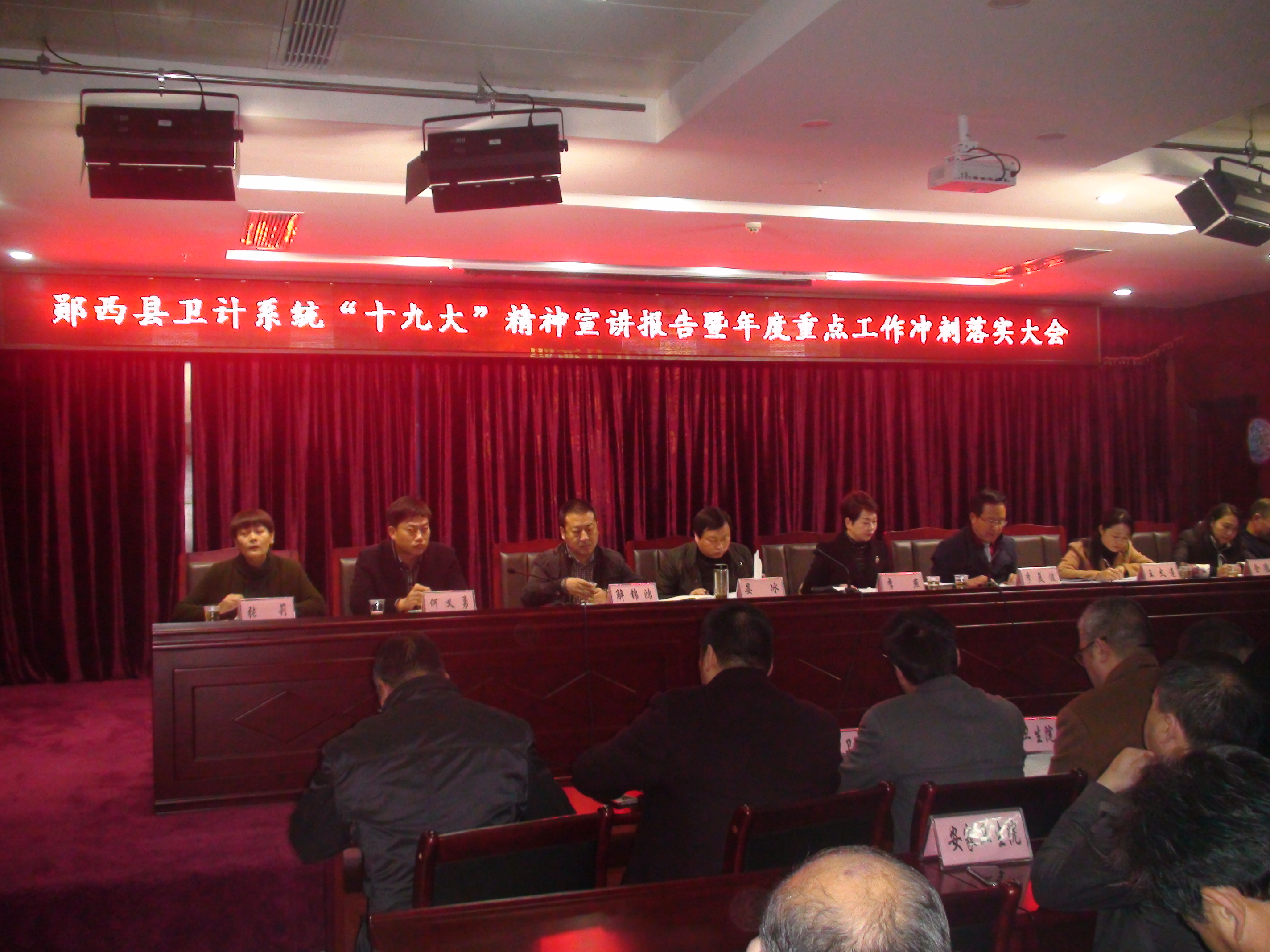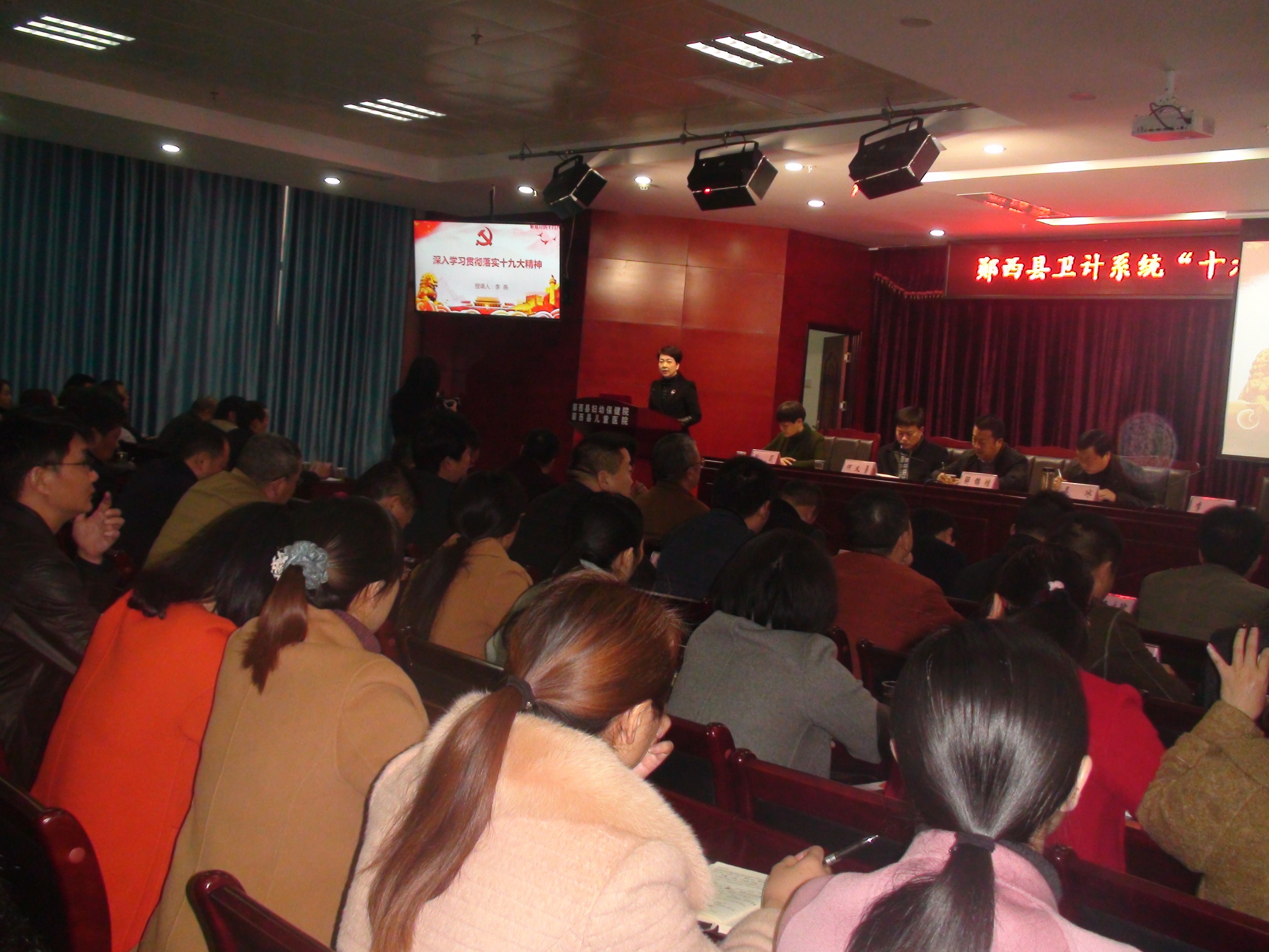 11月17日,县卫计局在县妇保院大会议室召开全县卫计系统“十九大”精神宣讲报告暨年度重点工作冲刺落实大会。乡镇卫生院长、县直医院班子成员、科室以上负责人,局机关全体干部近300人参加了大会。
