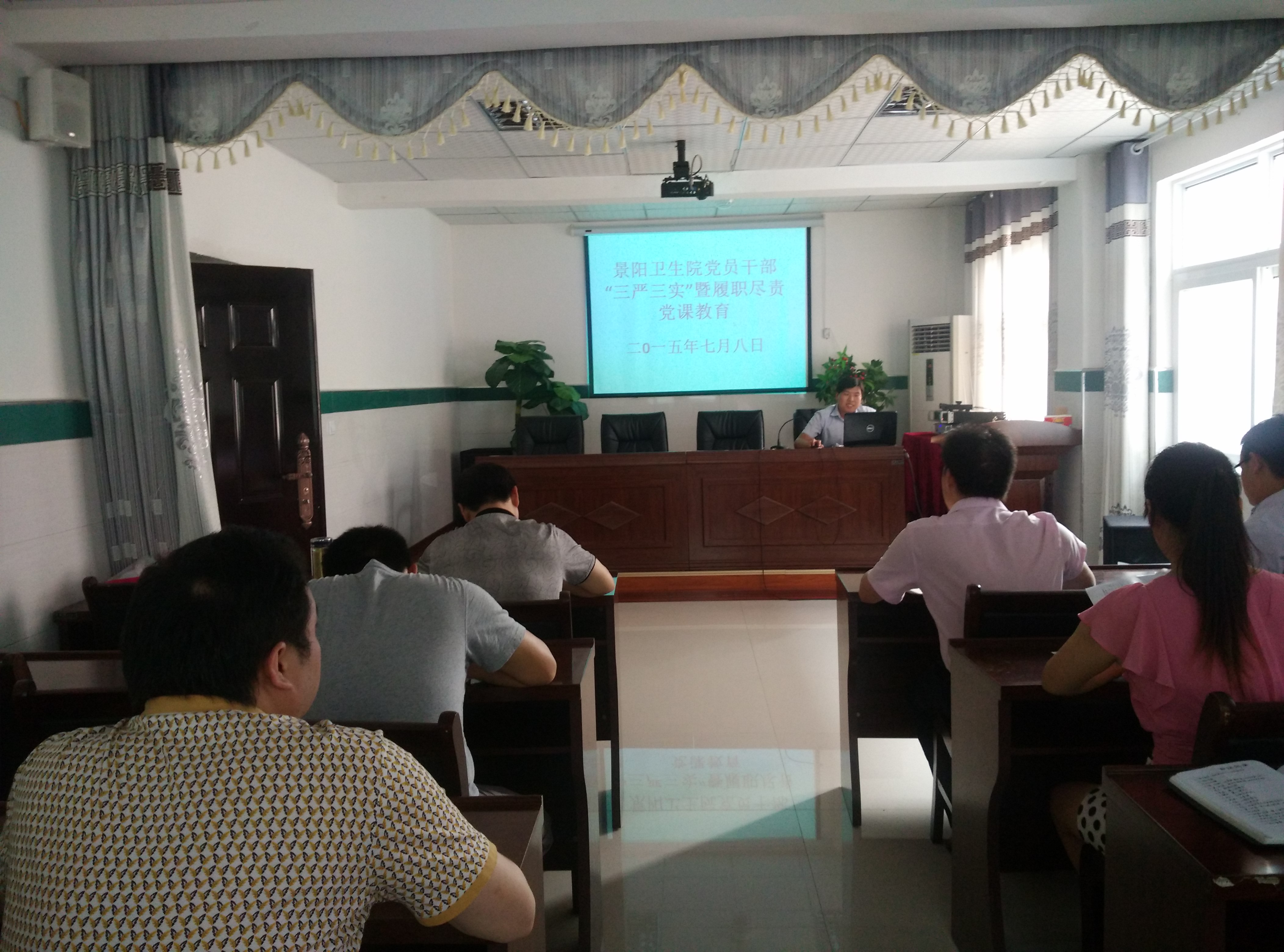 为进一步贯彻落实“三严三实”教育,提高党员干部树立求真务实的担当精神,做一名新时期的合格党员。7月8日下午,景阳卫生院组织全体党员干部在四楼会议室举行“三严三实”党课教育。
