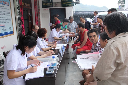 在槐树开展医院精准扶贫的院党总支书记寇文超与专家团队,为前来看病的60余名群众全部进行了量血压等体格检查及健康咨询解答,同时发放宣传资料200余份,收集并填写意见调查表及发放医院知名专家联系卡。