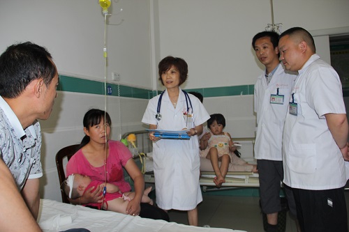 内儿科病房:县医院儿科主任乐功芳,为一例8个月大的重度细菌性痢疾患儿进行了查房,查房过程中,乐功芳对基层医生针对该患儿的诊断治疗进行了指导,并调强,在基层没有大便细菌培养的条件下,对抗生素的使用要做到合理谨慎,以防其毒副作用对小儿器官功能的损害。