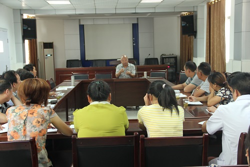 会议室:院长助理张茂洪为该院医护人员及村医开展了健康知识讲座,他对糖尿病的诊断、治疗、注意事项及高血压的药物治疗进行了通俗易懂的讲解,并代表医院向工作在最基层的12名村医们每人赠送了一张免费体检表。