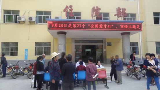 牙之初,性本洁,勤刷牙,多爱护,洁无暇,多美貌,若损失,不重来,呼民众,齐爱牙”。2015年9月20日是世界第27个爱牙日,店子卫生院公共卫生科人员积极开展爱牙健康宣传活动,积极引导广大群众养成定期口腔检查,远离口腔疾病的健康意识,活动还为附近居民进行健康体检服务,得到群众好评。