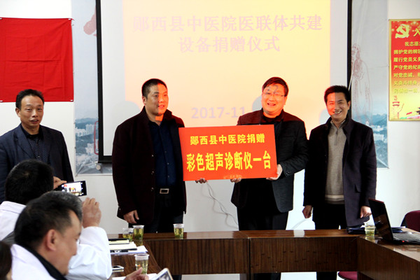 图为中医院向土门镇卫生院捐赠彩色超声诊断仪